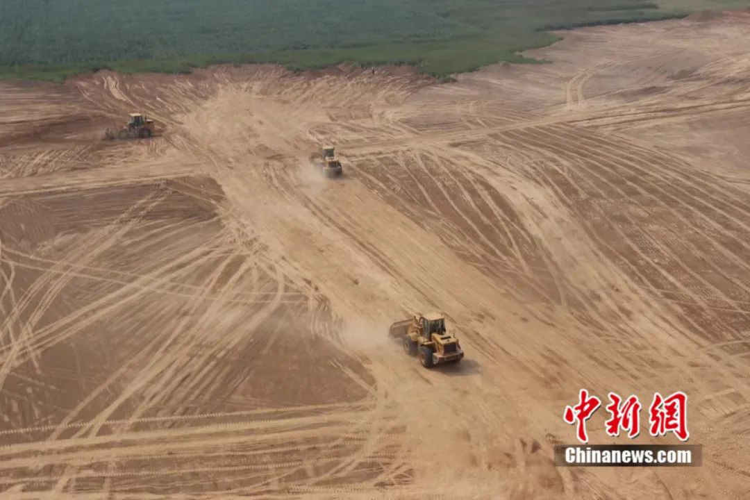 黄河滩涂施工现场。临猗县委宣传部提供
