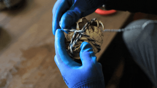 村民正在绑大闸蟹。临猗县委宣传部提供