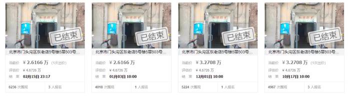 据阿里资产·司法平台显示的信息,北京市门头沟区东老店5号楼5层503号(2%份额)在几天前结束了拍卖,最终以26166.6元的价格被拍下。