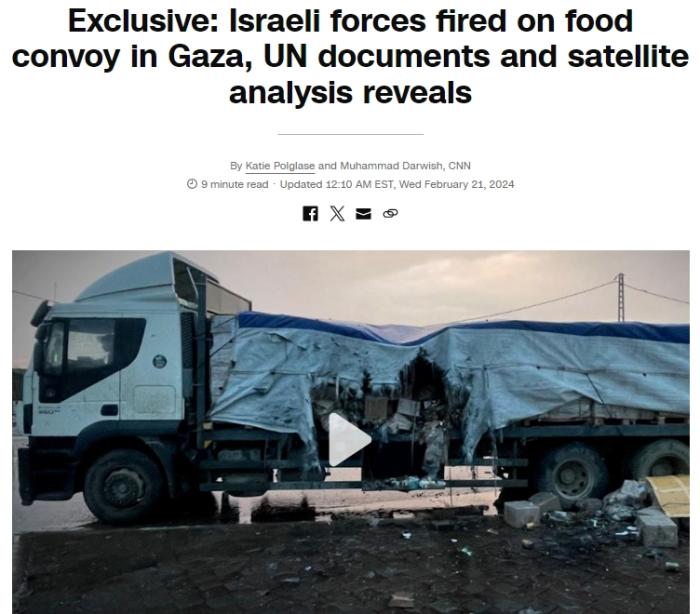 CNN:以军曾向联合国加沙运粮车队开火 大量物资被毁