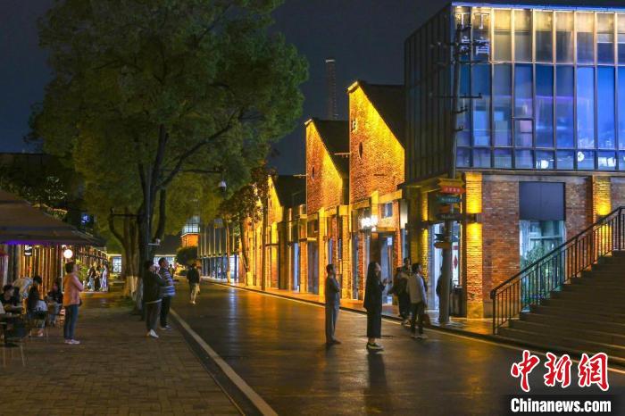 夜色下的江西景德镇陶溪川文创街区,游客漫步街区中。(资料图) 刘力鑫 摄