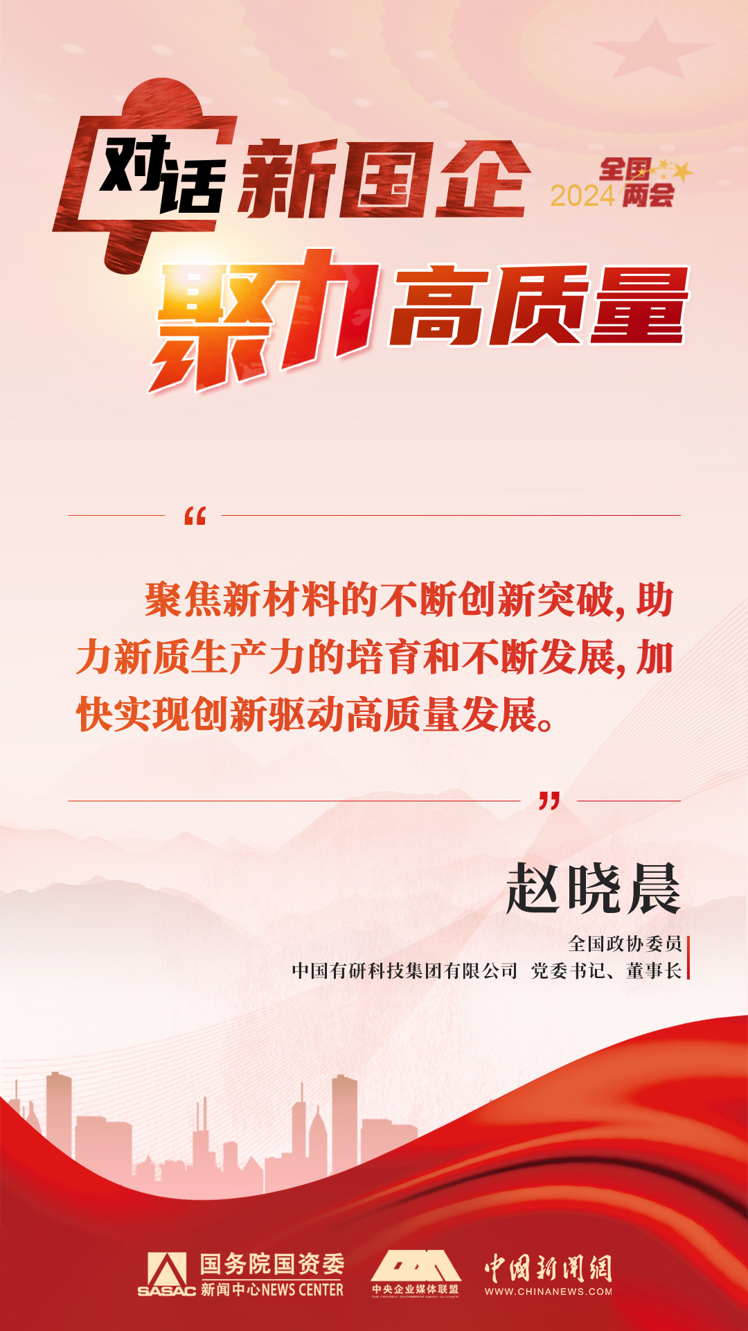 中新网北京3月6日电(记者 张尼) “我理解,科技创新是发展新质生产力的核心要素;新材料突破是战新产业、未来产业,是新质生产力孕育和发展的一个重要前提和基础。” 全国政协委员,中国有研科技集团有限公司党委书记、董事长赵晓晨在“对话新国企·聚力高质量”系列融媒体访谈中表示,要以新兴产业发展引领新质生产力形成,培育企业发展新动能。