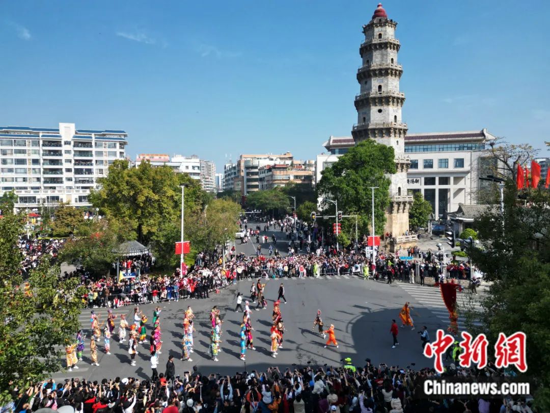 2024年2月14日正月初五,“中华英歌 舞动汕头”春节英歌舞展演巡游活动在广东汕头举行,15支英歌队、近千名“舞者”献上“年味”十足的表演。陈楚红 摄