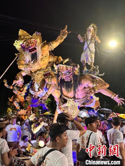 3月10日晚,巴厘岛举行盛大的“Ogoh-Ogoh”游行。随着夜幕降临,整个岛屿变得喧闹起来,每个村落的男女老少都汇聚在一起,参与到这场充满仪式感的游行中。在巴厘岛市中心的一处广场,抬“Ogoh-Ogoh”怪兽雕像的人们,伴随着打击乐和呼喊声,将怪兽雕像晃动起伏,模仿怪兽行走的姿态,让这些由竹子、纸张和胶合板制成的雕像看起来活灵活现。