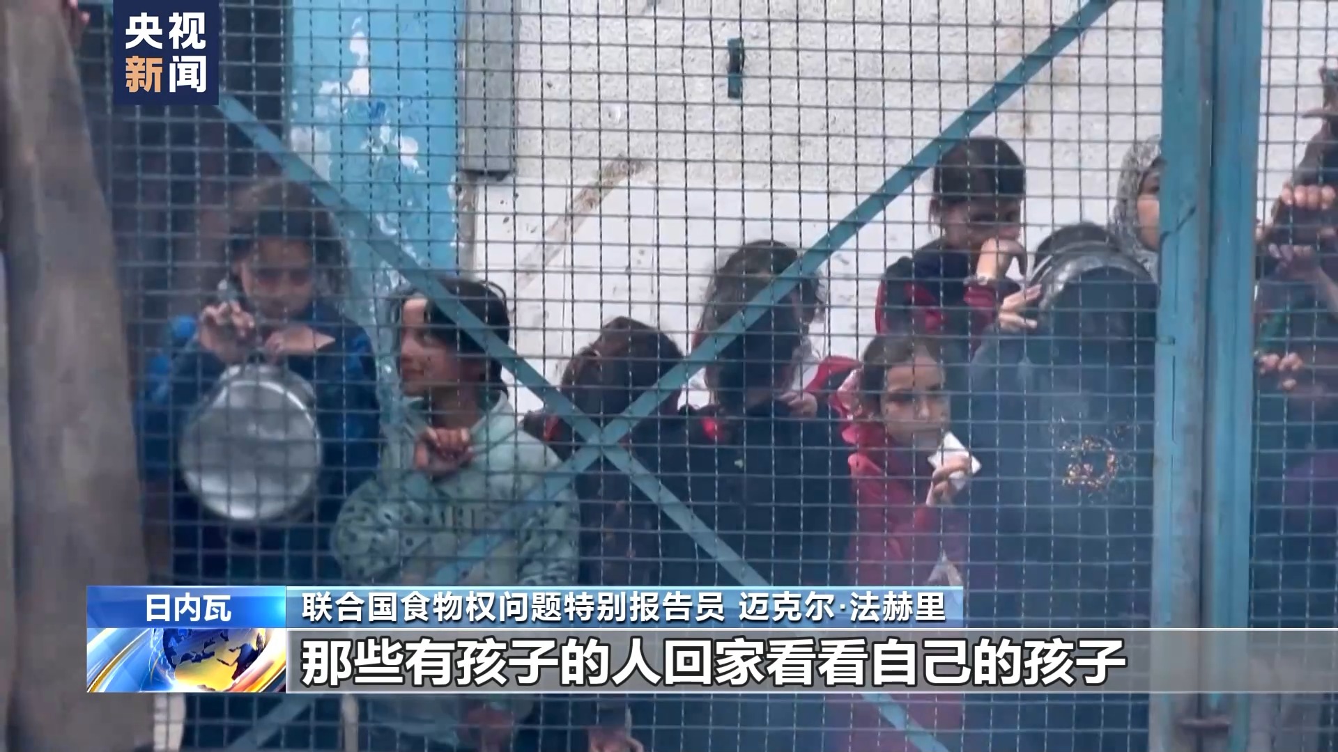 联合国食物权问题特别报告员 迈克尔·法赫里:人道主义援助行动还要多慢?还要死多少人?还需要多少统计数据?还要多少故事和多少张照片?那些有孩子的人回家看看自己的孩子,想想加沙地带正在发生什么。(来源:央视新闻客户端)