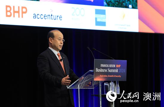 中国驻澳大利亚大使肖千出席2024年《澳大利亚金融评论报》商业峰会并发表演讲(摄影 贺吉)