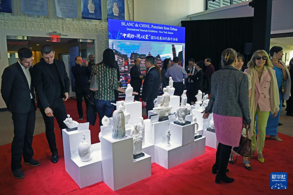 3月14日,在美国纽约,人们参加“中国白·德化瓷”国际巡展纽约推介活动。新华社记者 李睿 摄