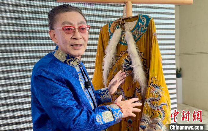 3月16日,在捐赠仪式上,六小龄童介绍父亲和自己曾经穿过的蟒袍。 项菁 摄