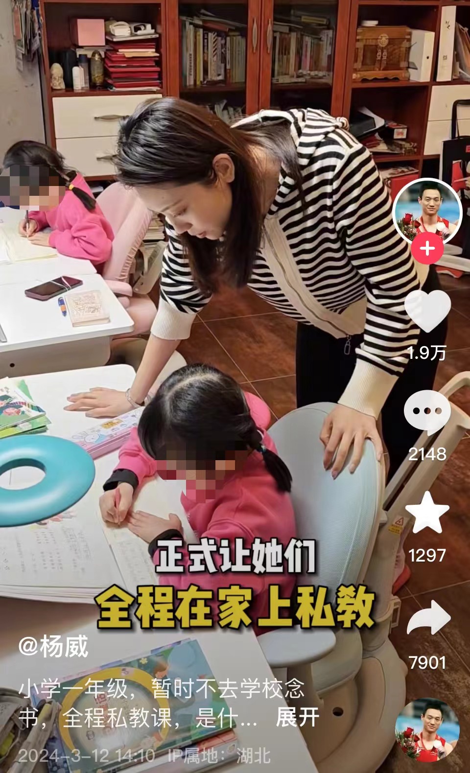 近日,体操奥运冠军杨威在社交平台发布视频称,由于去年两个女儿连生好几场病后,他跟妻子杨云做了个大胆尝试,让上一年级的两个女儿暂时不去学校念书,全程在家上私教。