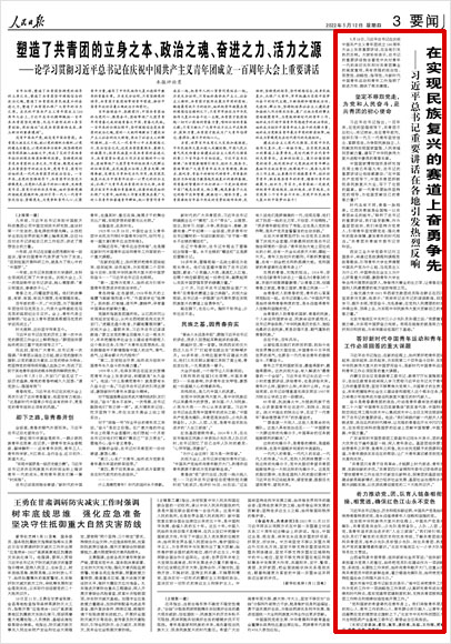 5月10日,习近平总书记在庆祝中国共产主义青年团成立100周年大会上发表重要讲话,在各地引发热烈反响。大家纷纷表示,总书记的重要讲话饱含着党中央对青年一代的亲切关怀和对共青团事业的高度重视,具有很强的政治性、思想性、战略性、指导性,为新时代中国青年运动和青年工作指明了前进方向、提供了根本遵循。