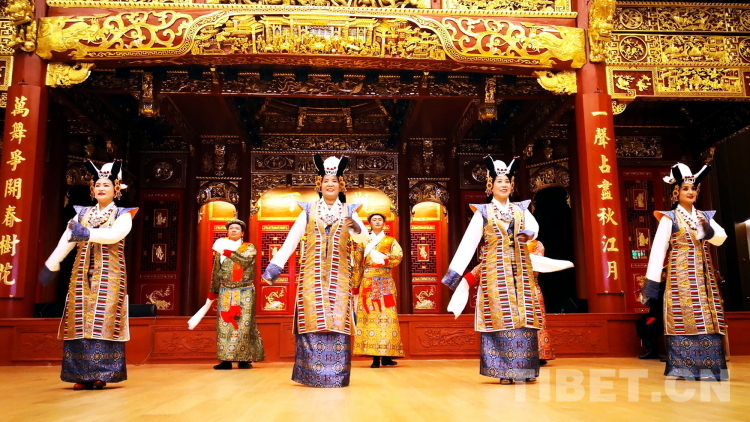 图为拉萨市城关区娘热民间艺术团演员表演国家级非物质文化遗产“堆谐”摄影:刘莉