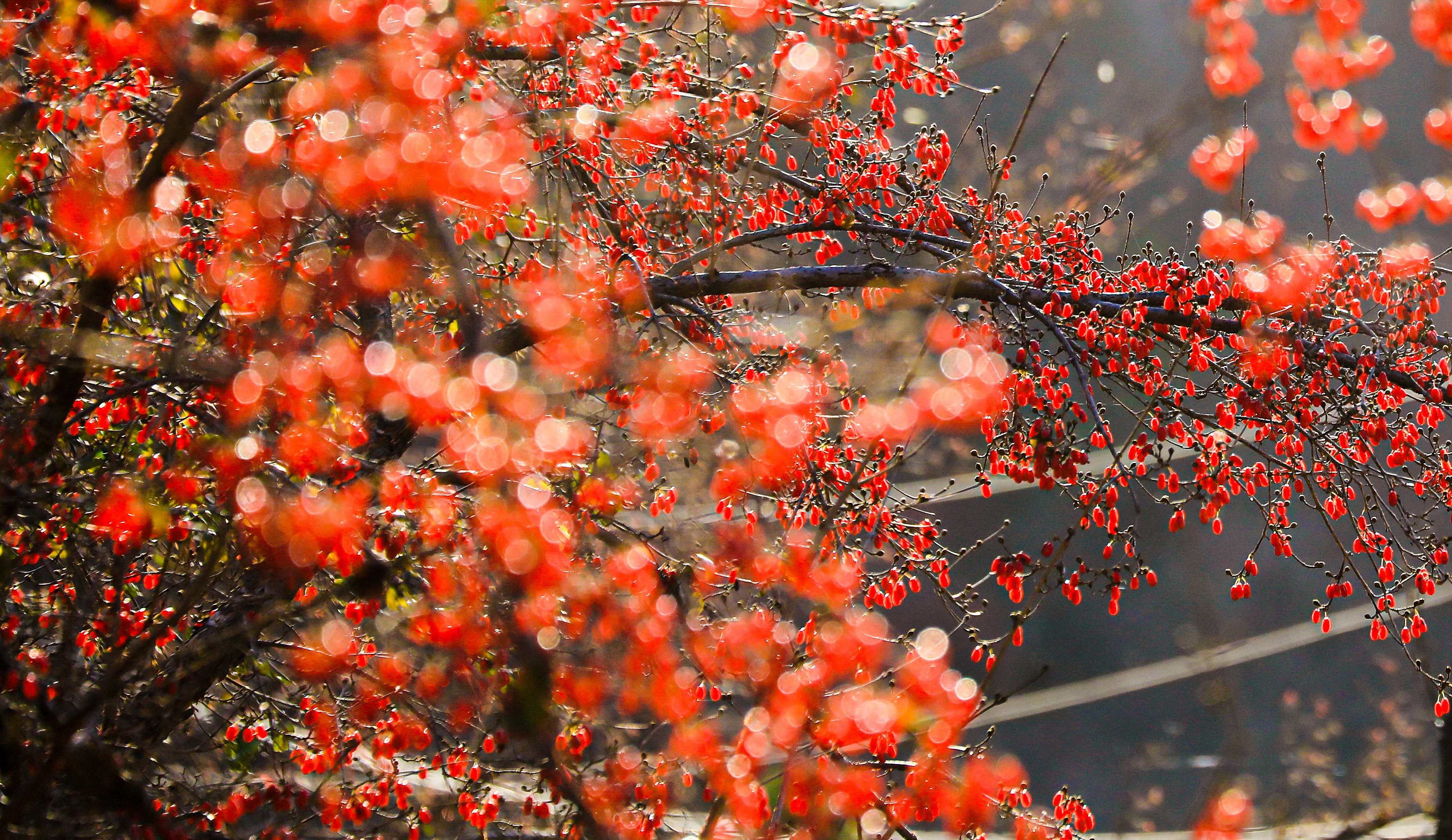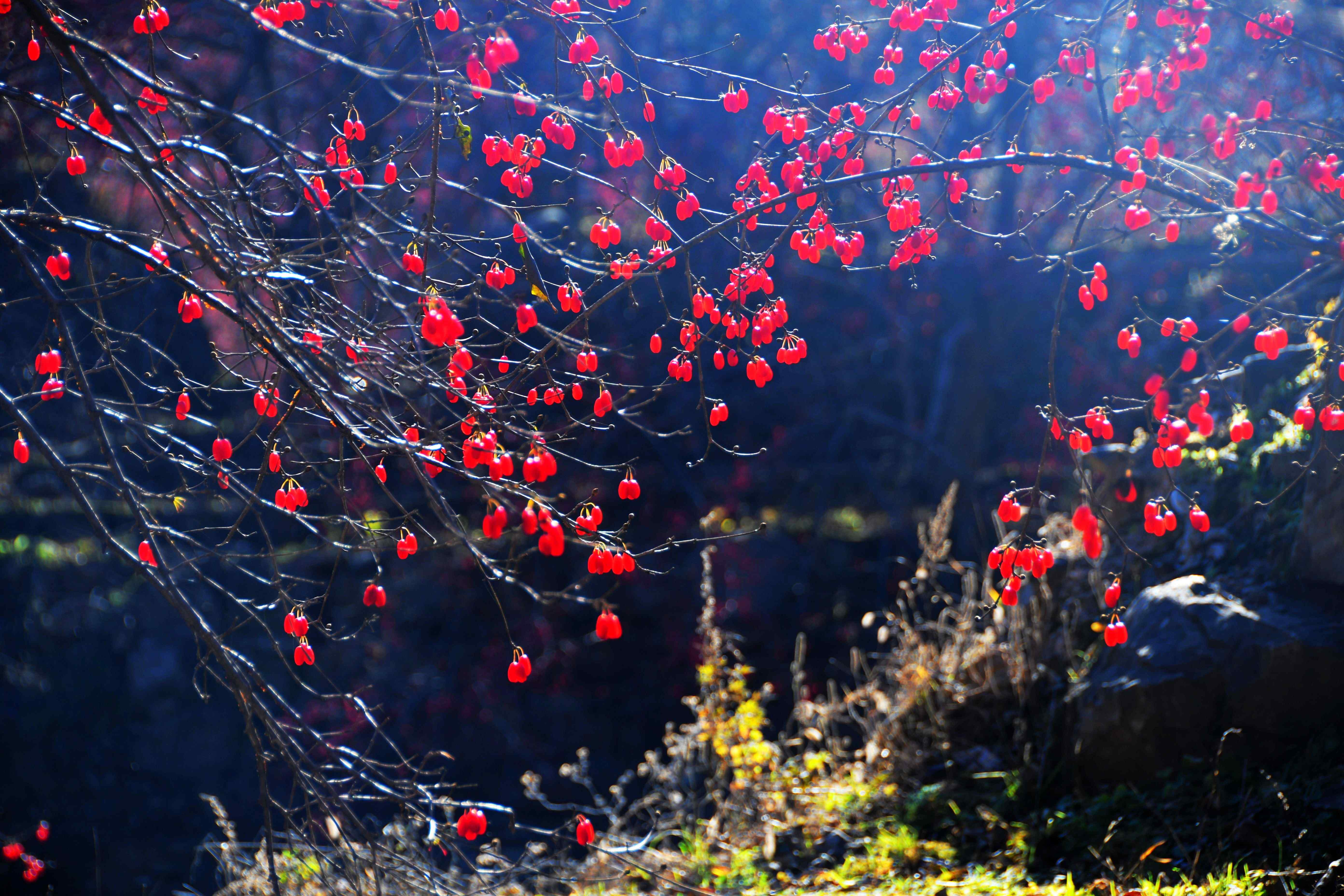 金秋时节,漫山遍野的山茱萸。