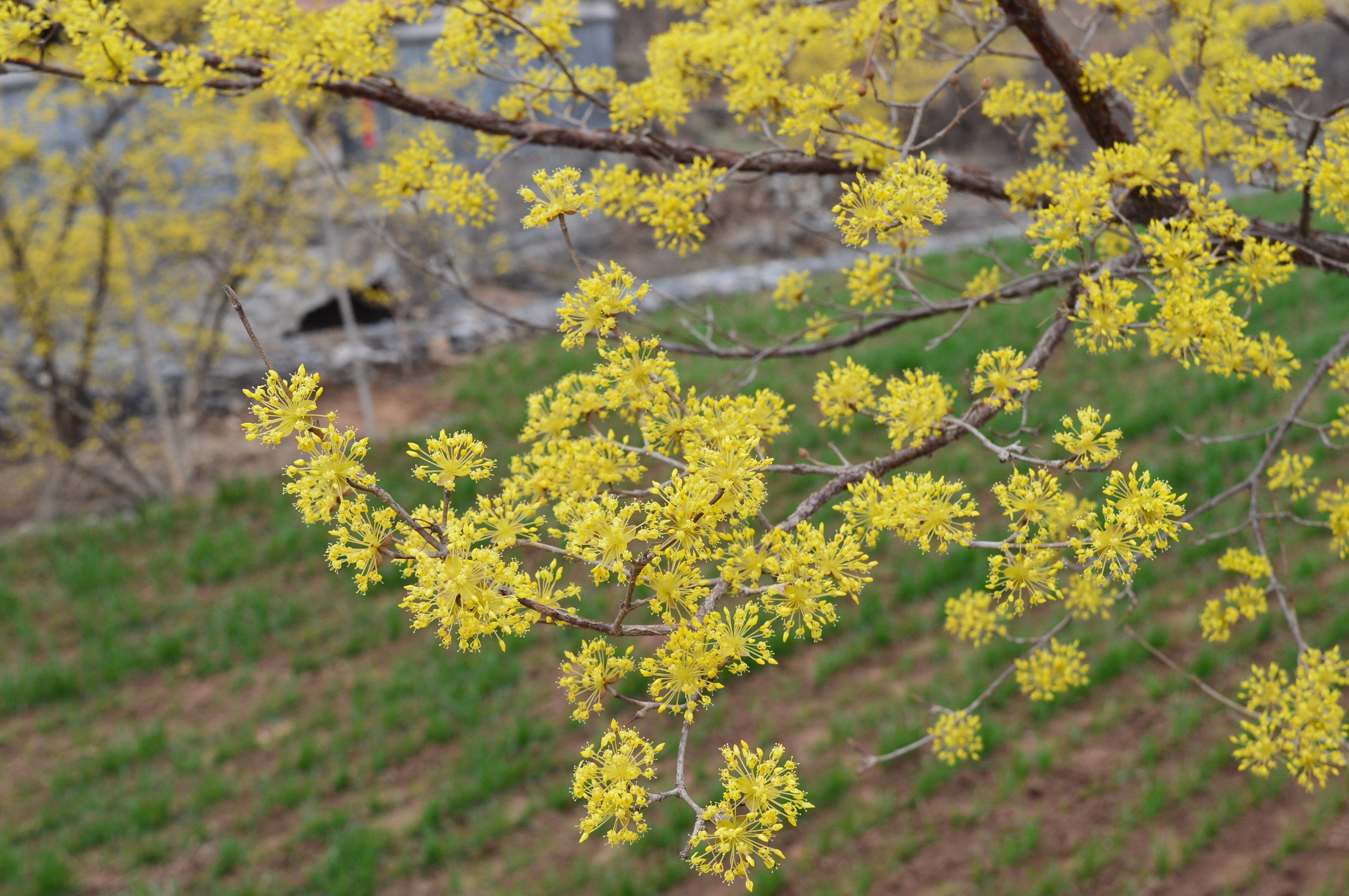 春天时绽放的山茱萸花。