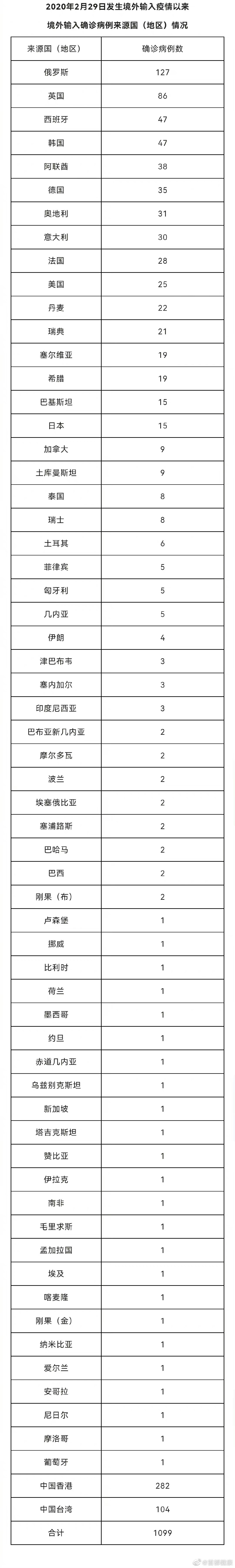 境外输入确诊病例
