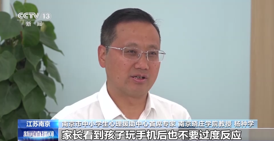 南京市中小学生心理援助中心首席专家 南京晓庄学院教授杨种学:家长看到孩子玩手机后也不要过度反应,指责训斥可能带来孩子更大的逆反心理。父母需要共情孩子,理解孩子现实生活中遇到了哪些困难,手机又满足了哪些心理需要;在互相理解和情绪稳定后,再去讨论使用手机的细则。平时也可以通过增加家庭的集体活动,增进家庭成员的情感连结,制订全家人共同遵守的公约,逐渐减少对手机的依赖。