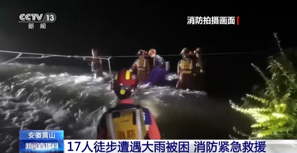 安徽黄山17人徒步遭遇大雨被困 消防紧急救援