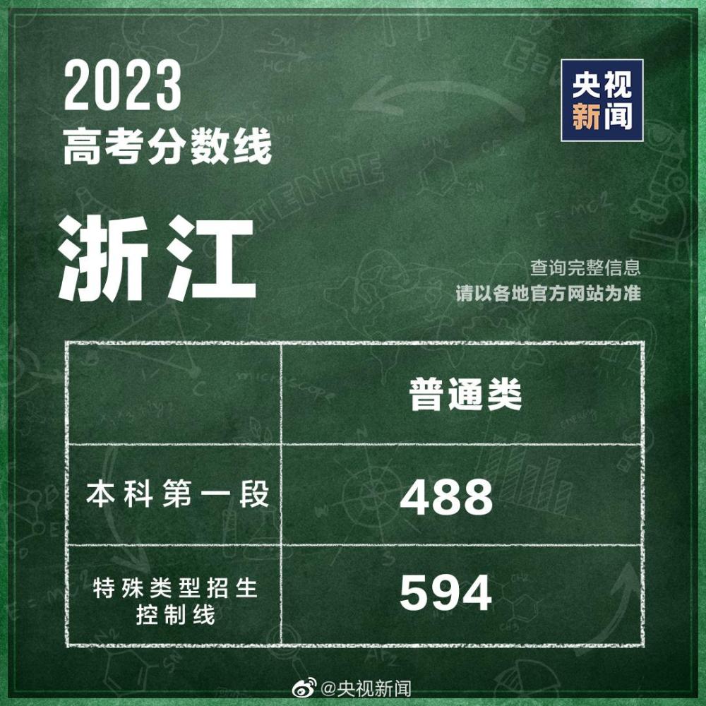 浙江公布2023高考分数线: