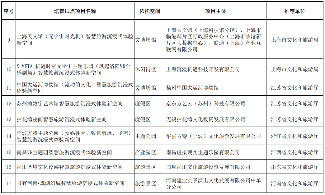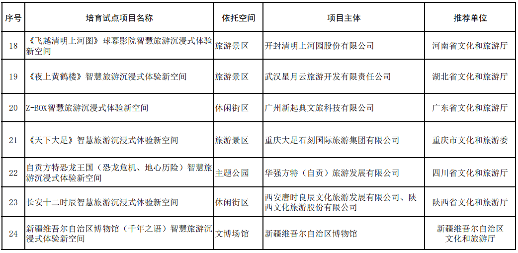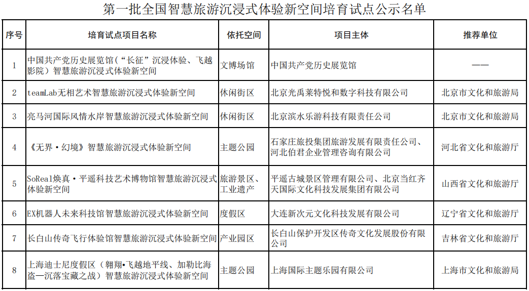 全国首批24个智慧旅游沉浸式体验新空间培育试点公示
