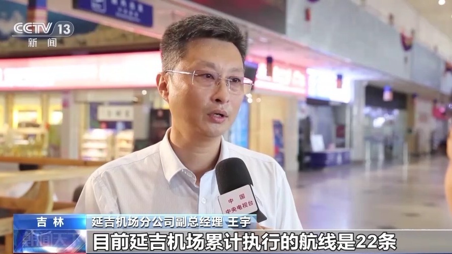 延吉机场分公司副总经理 王宇:目前延吉机场累计执行的航线是22条,国内航线18条,国际航线4条。每周能达到对韩国的航线84班,对韩国的航班量位居东北的第一位。