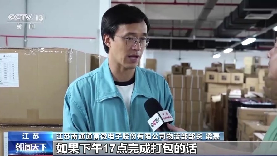 江苏南通通富微电子股份有限公司物流部部长 梁磊:我们当天的出货,如果17点完成打包的话,当天晚上12点前,基本就能到达深圳。客户的一些特急件,我们甚至凌晨就能派送到位。