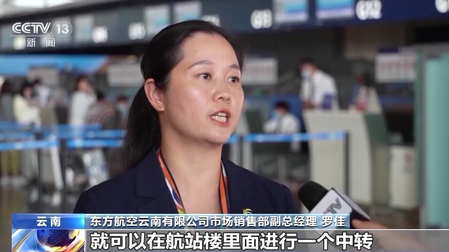 东方航空云南有限公司市场销售部副总经理 罗佳:旅客不需要出隔离区,就可以在航站楼里面进行中转,并且行李直挂,行李从始发站开始不用二次提取。