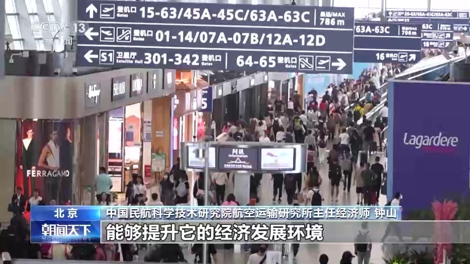 中国民航科学技术研究院航空运输研究所主任经济师 钟山:通过我们这种“干支通、全网联”以及通程航班的模式,能够让我们三、四线城市的旅客,融到整个国家的经济社会建设中,能够提升它的经济发展环境。特别是从统一大市场的开放角度来看,这个是最终能够促进我们国内市场的衔接。