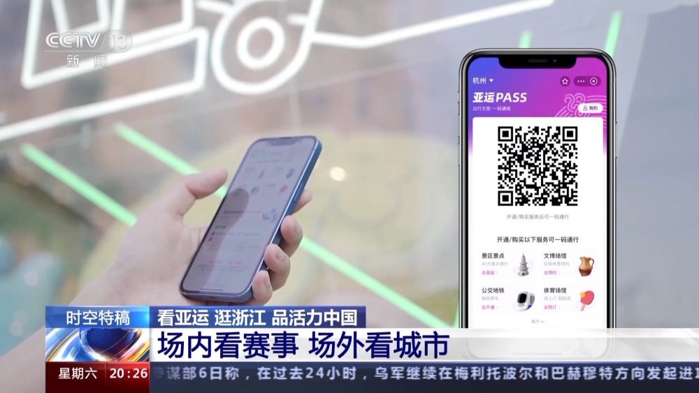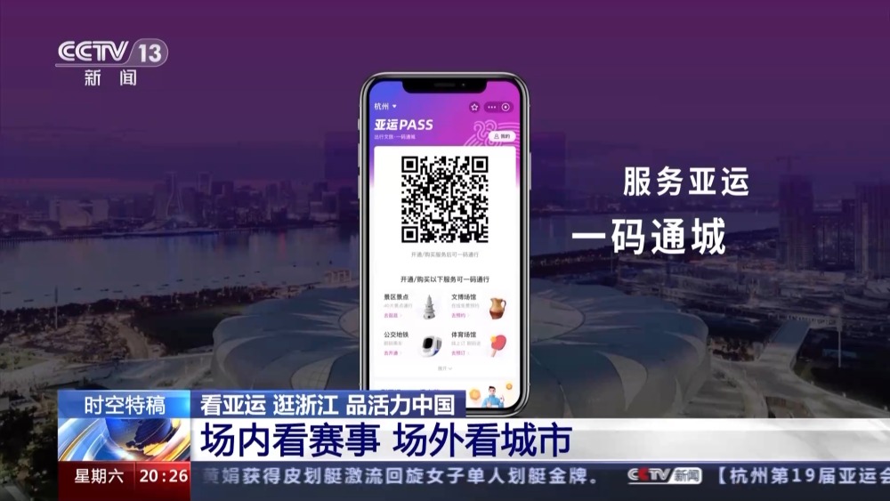 这样细致、贴心的理念已经渗透到了杭州公共服务的方方面面。还有更方便的,您看我手上这个二维码叫亚运pass码,现在我们只要通过这一个二维码,就可以乘公交、乘地铁、景区入园等等功能,不用再在各种不同的二维码之间来回切换了。