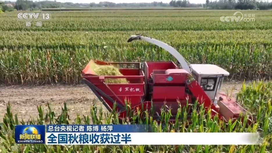 央视网消息(新闻联播):农业农村部最新农情调度显示,眼下全国秋粮收获过半,主产区已进入收获高峰。