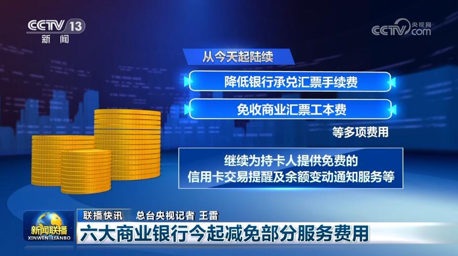 工商银行、农业银行、中国银行、建设银行、交通银行、邮储银行六大银行发布公告,将从今天起降低多项银行服务收费。多项减免措施从今天起实施,部分银行此前已经降低或减免的相关收费项目将继续延续优惠措施。六家银行还承诺,继续提供信用卡容时、容差服务,也就是说如果信用卡持卡人在还款日没有足额还款,所差金额不高于10元,或者还款日期晚于还款日不超过3天,银行将视同全额还款,将没有偿还的金额自动转入下期账单。未来,六大行还将陆续把容差金额扩大到100元。
