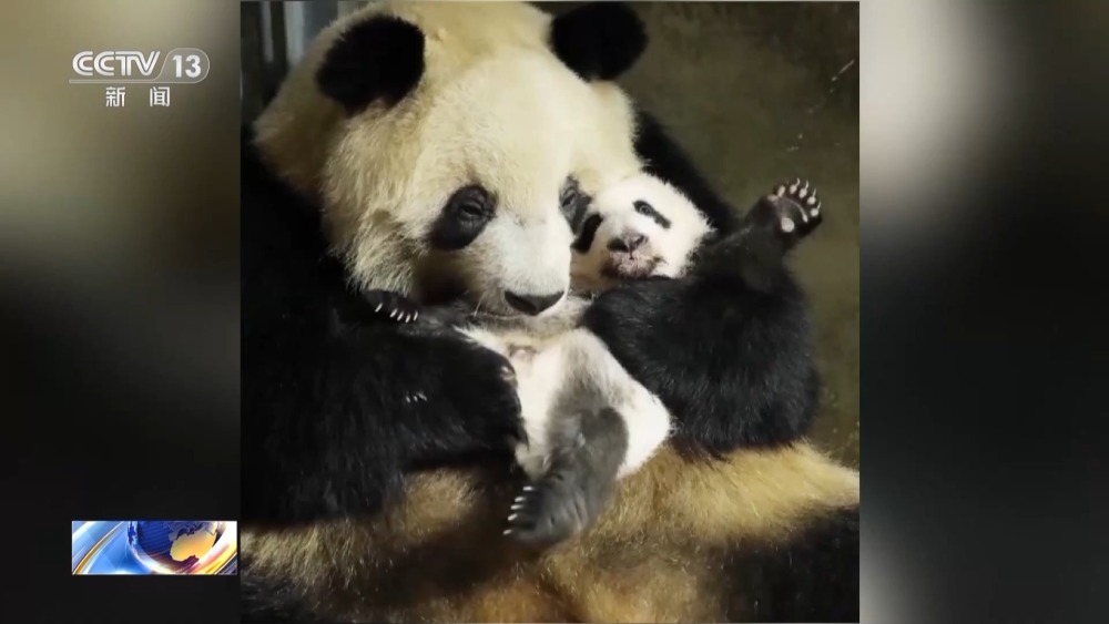 画面里大熊猫“正正”怀里抱着的,就是它在今年8月9日产下的一对雄性双胞胎幼仔。现在,它们一身毛茸茸,成长到可以跟着妈妈活动玩耍了。和“正正”同一天生产的,还有大熊猫“安安”,它产下了一对龙凤胎。同一天出生四只大熊猫幼仔,这也创下了秦岭大熊猫研究中心大熊猫繁育的历史纪录。随后,在今年8月14日,大熊猫“丫丫”产下一只雄性幼仔。半个多月后,也就是9月6日,大熊猫“明明”又产下一对龙凤胎。
