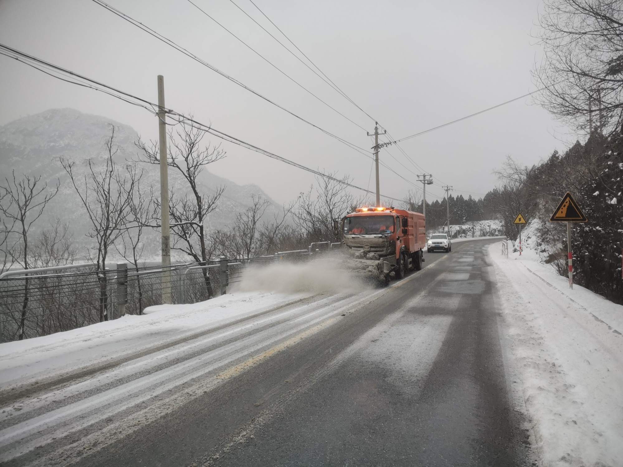 山区道路清雪作业(央广网发 门头沟斋堂镇供图)