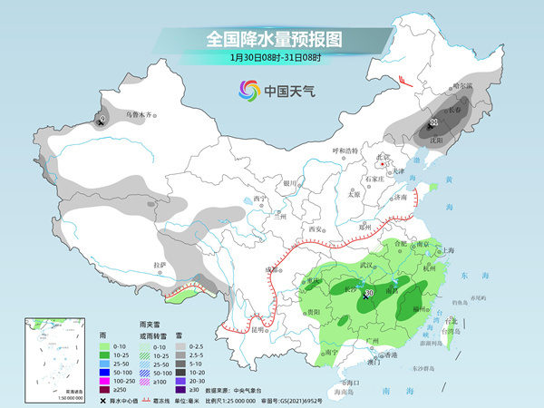 今天江南华南雨势增强 31日起中东部迎大范围雨雪天气