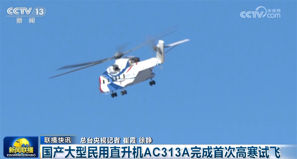 国产大型民用直升机AC313A完成首次高寒试飞