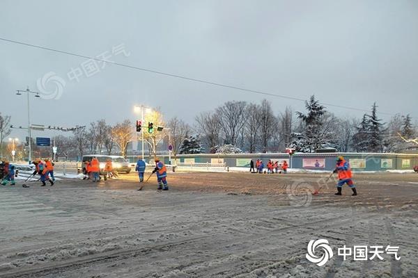 昨天,江苏宿迁大到暴雪过后,各部门紧急清雪,确保公众出行安全。