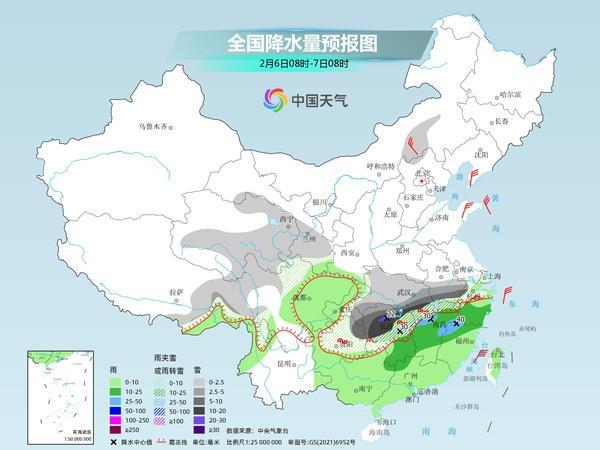今明天(2月6日至7日)南方大范围雨雪天气将持续,7省市部分地区有大到暴雪,局地大暴雪,湖南大部、湖北东南部等地仍有冻雨。在雨雪影响下,南方大部气温持续低迷,而北方降水稀少气温将率先回升。南方明显回暖则要等到除夕之后。