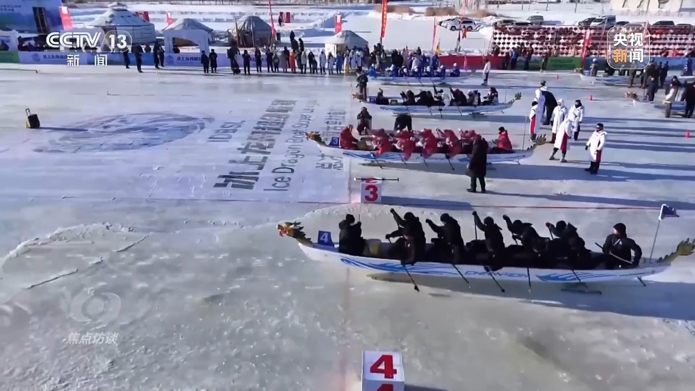 在内蒙古,冰上龙舟赛击鼓竞渡,让龙年一开年就热闹得别开生面。