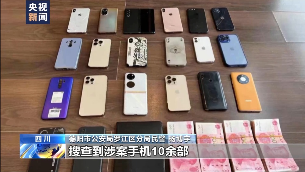 德阳市公安局罗江区分局民警 杨博宇:当时我们在赵某的出租屋内,搜查到涉案手机10余部,涉案银行卡上百张,涉案现金50余万元。