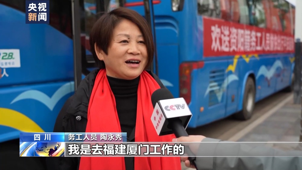 务工人员 陶永秀:我是去福建厦门工作的,往年自己出去买车票很难买,今年有返岗专车,很感谢。
