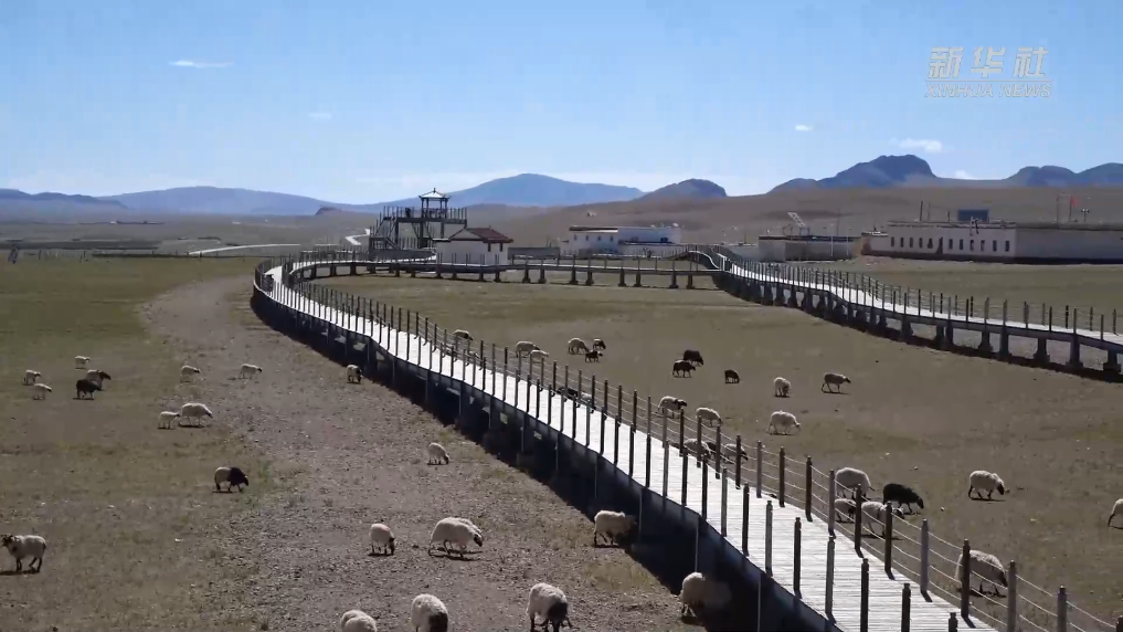 色林错地处西藏自治区北部羌塘国家级自然保护区内。夏季来临,色林错湛蓝深邃,羊群在湖畔草场上觅食,风景怡人。