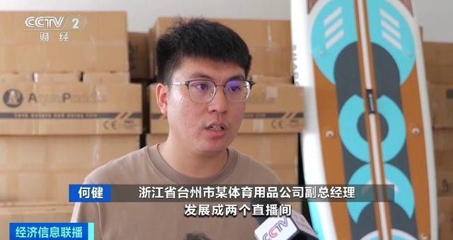 浙江省台州市某体育用品公司副总经理 何健:从去年的一个直播间发展成了两个直播间。休闲板、全能板可能更受大家的欢迎,大概占50%到60%。