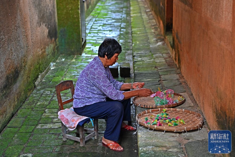 8月16日,一名村民在大芦村一条小巷里穿行。