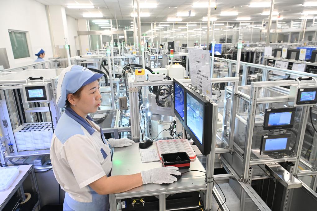10月8日,江苏省太仓市阿尔派电子有限公司的员工在装配汽车音响。新华社发(计海新 摄)
