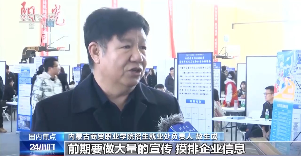 内蒙古商贸职业学院招生就业处负责人 敖生成:我们不是光举办一个招聘会而已,前期要做大量宣传、摸排企业信息向孩子们输送,招聘会完了以后进一步回访企业,真正达到精准对接,把招聘能够真的落到实处。