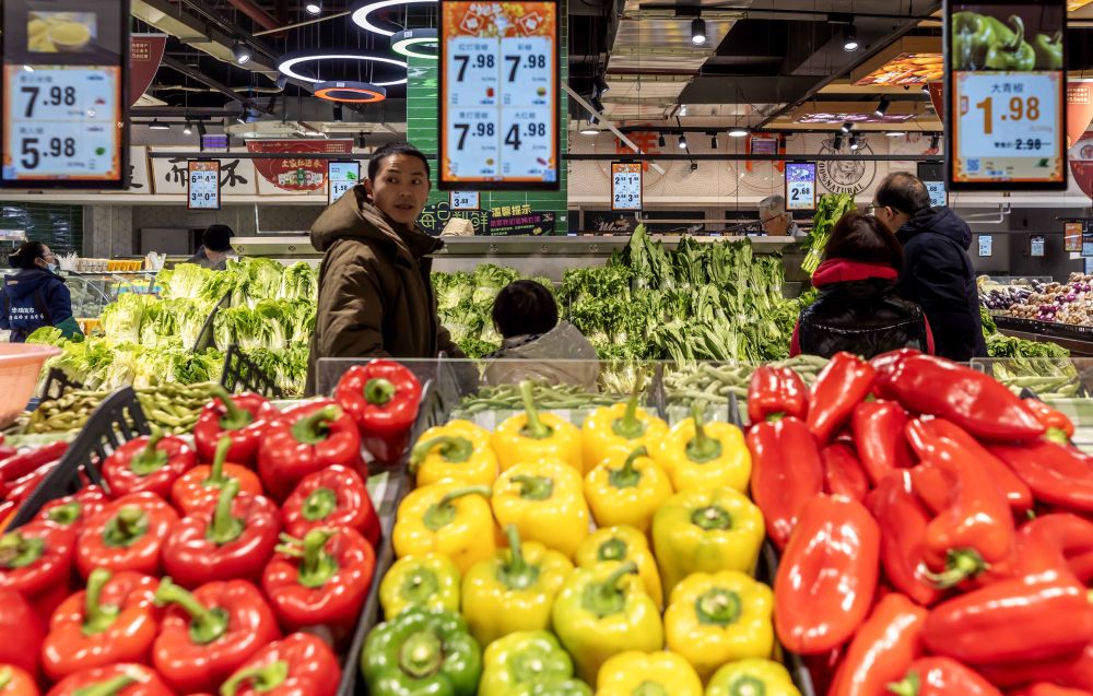 2月9日,消费者在贵州省黔西市一家超市选购蔬菜。新华社发(范晖摄)