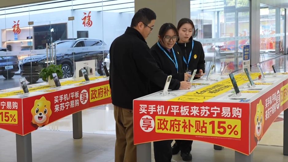 “以旧换新咨询的比较多的是手机这一块。因为手机、平板和智能手环这一块是新增的补贴。”苏宁易购广西三祺广场店店长 廖永宁表示。