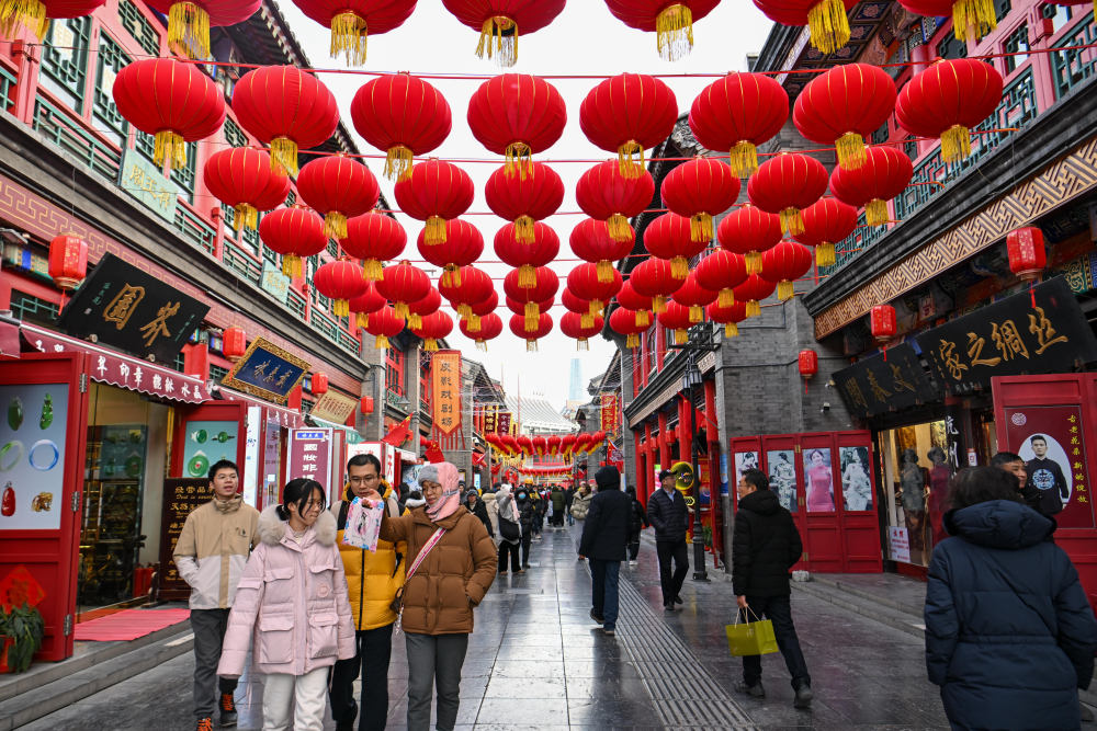 1月28日,游客在天津古文化街游览。新华社记者 孙凡越 摄