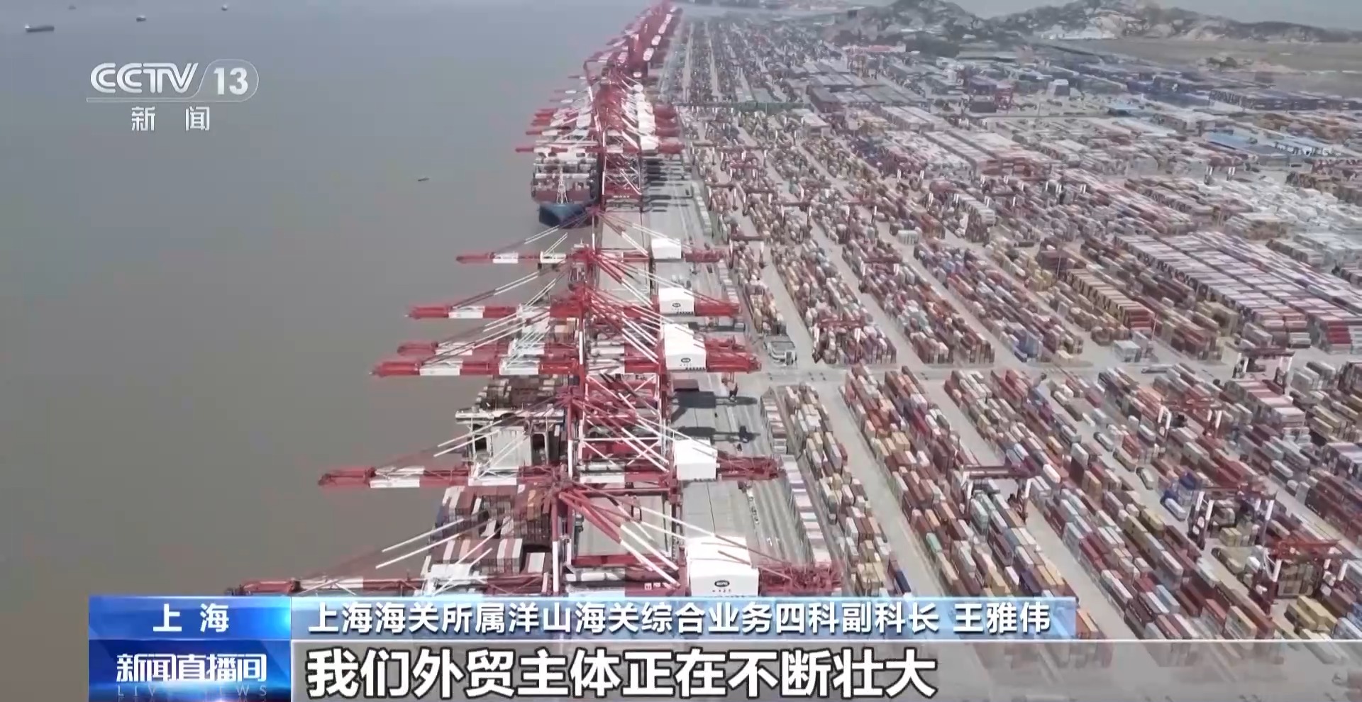 上海海关所属洋山海关综合业务四科副科长 王雅伟:今年1月份以来,我们共受理海关进出口报关单3.3万份,较去年同期增长了近两个百分点。这些数据让我们明显感觉到,外贸主体正在不断壮大,外贸市场活力也在持续增强。