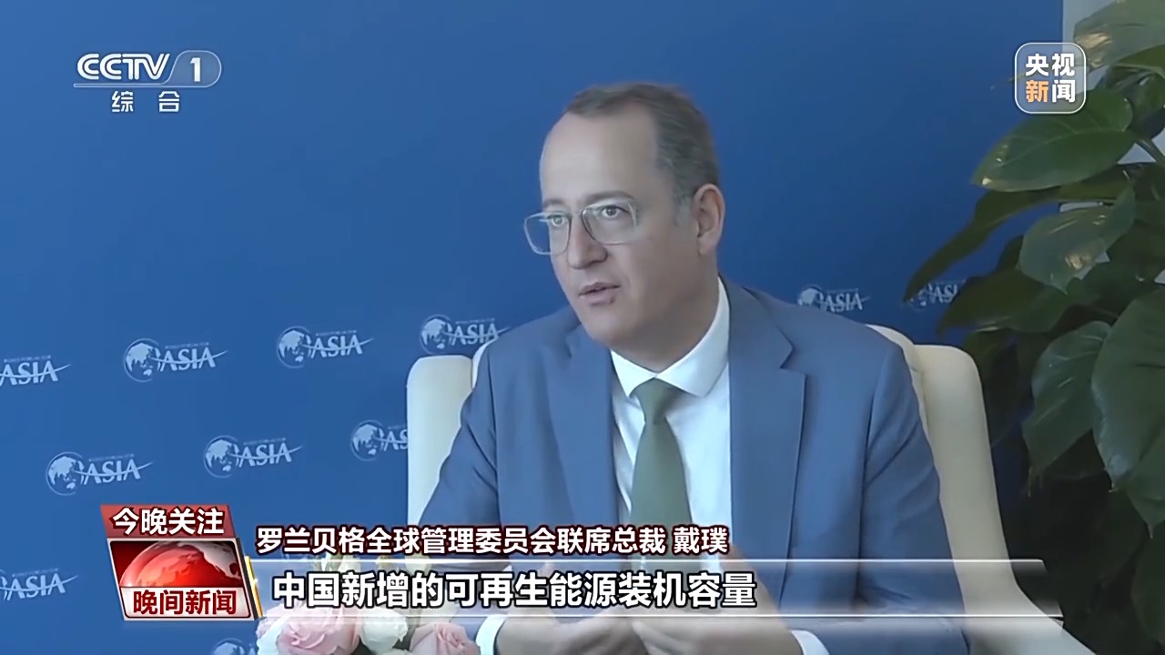 罗兰贝格全球管理委员会联席总裁 戴璞:去年,中国新增的可再生能源装机容量相当于世界其他地区新增的总和,中国绿色发展成效明显。现在全球都需要向绿色转型,中国提供了一个成本低且高效的方案。