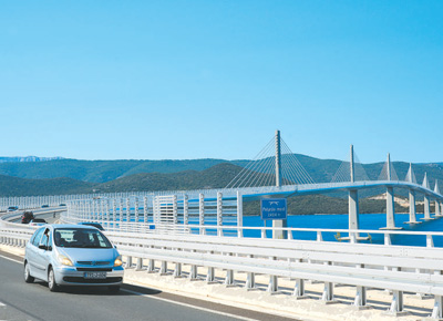 车辆在中企承建的克罗地亚佩列沙茨大桥上行驶。