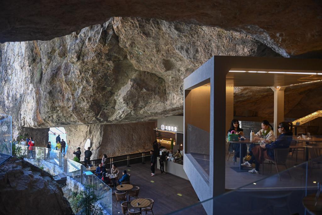 2024年11月26日,游客在雁荡山“悬崖上的咖啡馆”休闲。新华社记者黄宗治 摄